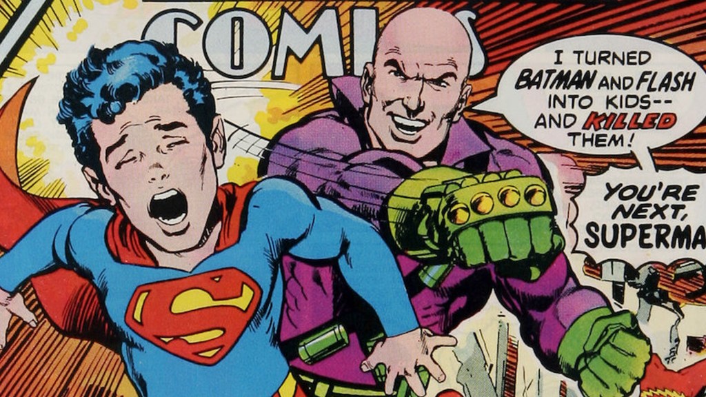 Lex Luthor es un tipo astuto, pero ¿qué tan malvado es exactamente? Bueno, Action Comics #466 responde a esa pregunta. El archienemigo de Superman ha transformado a los héroes de DC en niños, y después de derrotar a Batman y Flash, se enfrenta a Superman (o más bien, a Superboy). Lex es implacable al asestar un puñetazo al inexperto Chico de Acero. La historia revela que esto era solo una ilusión causada por la hipnosis. No me sorprende tanto que Lex golpeara a un niño, pero sí me sorprende que DC Comics permitiera que esta portada pasara sin problemas.