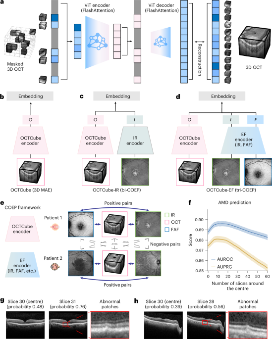 El modelo OCTCube, uni-modal, fue pre-entrenado en 26.605 volúmenes 3D de OCT, que comprenden 1,62 millones de imágenes 2D de OCT, y demostró un alto desempeño en la predicción de ocho enfermedades retinianas.
