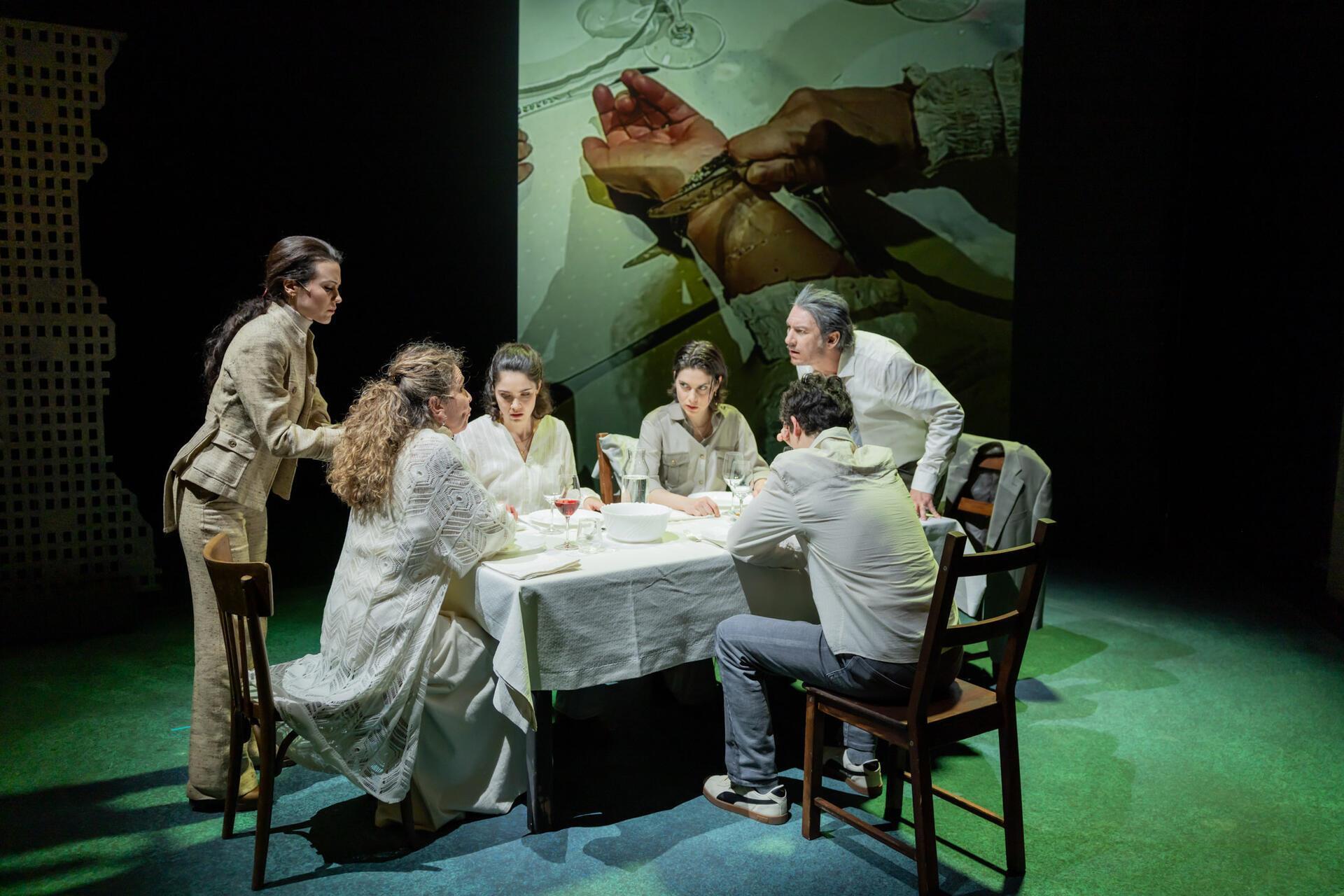 El escenario se inunda de proyecciones. Varios monitores muestran a los personajes de la obra en primer plano o en escenas pregrabadas, y desde la perspectiva de la psicoterapeuta. Esto plantea la pregunta de qué es realidad y qué es proyección. Es un juego angustiante con el dolor, que recuerda a una película de Michael Haneke como “Funny Games” (1997), donde uno se pregunta dónde está la salida. No la hay para los personajes, solo la muerte de los opresores. Al final, mucho permanece en la mente del espectador, quien, aturdido, sale del teatro a la calle y, después de unos minutos, se tranquiliza al darse cuenta de que todo fue solo una pesadilla, solo teatro, uno cruel e impactante, en el que los actores han demostrado todo su talento.