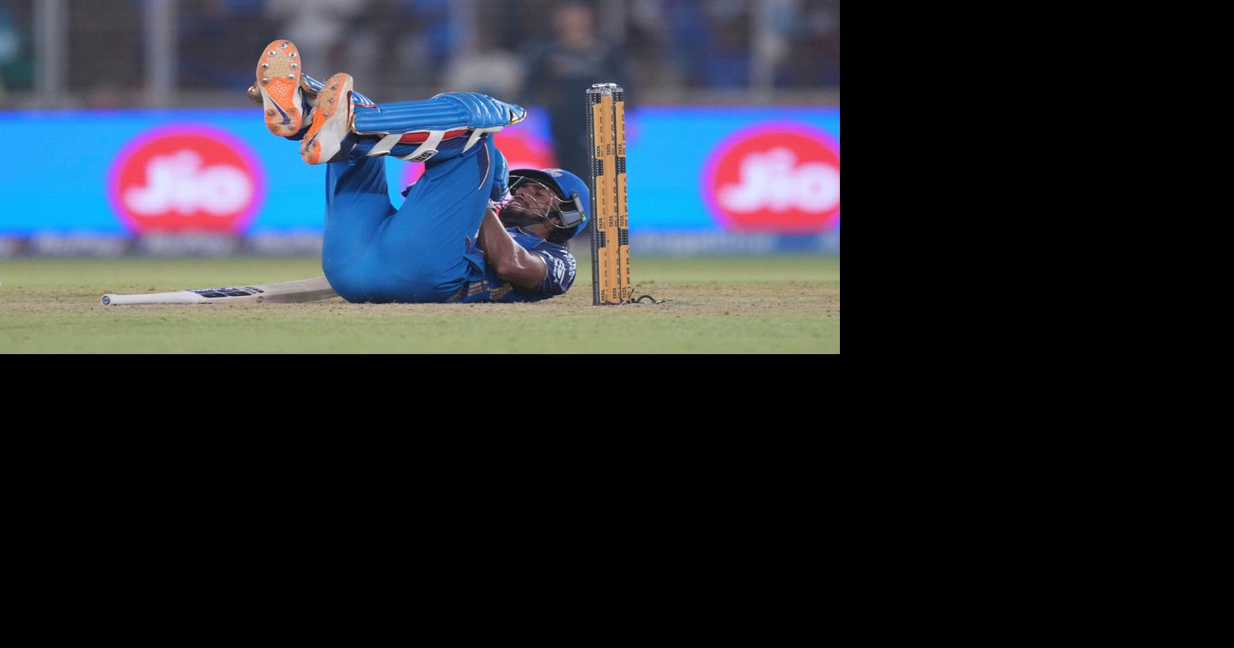 Tilak Verma, jugador de los Mumbai Indians, cayó al suelo tras ser golpeado por una pelota durante el partido de la Indian Premier League contra los Gujarat Titans.