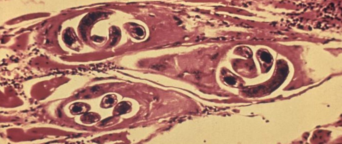 La triquinosis es una enfermedad transmitida por el consumo de carne de cerdo cruda o poco cocida, o productos derivados del cerdo contaminados con el parásito Trichinella spiralis.