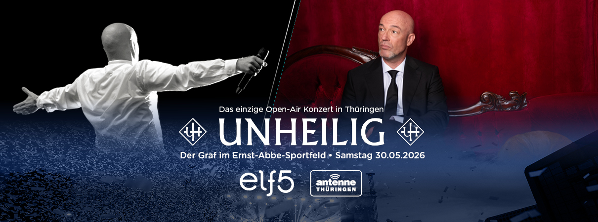 El 30 de mayo de 2026, UNHEILIG ofrecerá una velada muy especial en el Ernst-Abbe-Sportfeld de Jena. Este será el único concierto al aire libre de la banda en Turingia durante todo el año 2026.