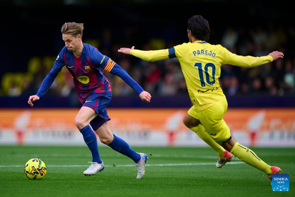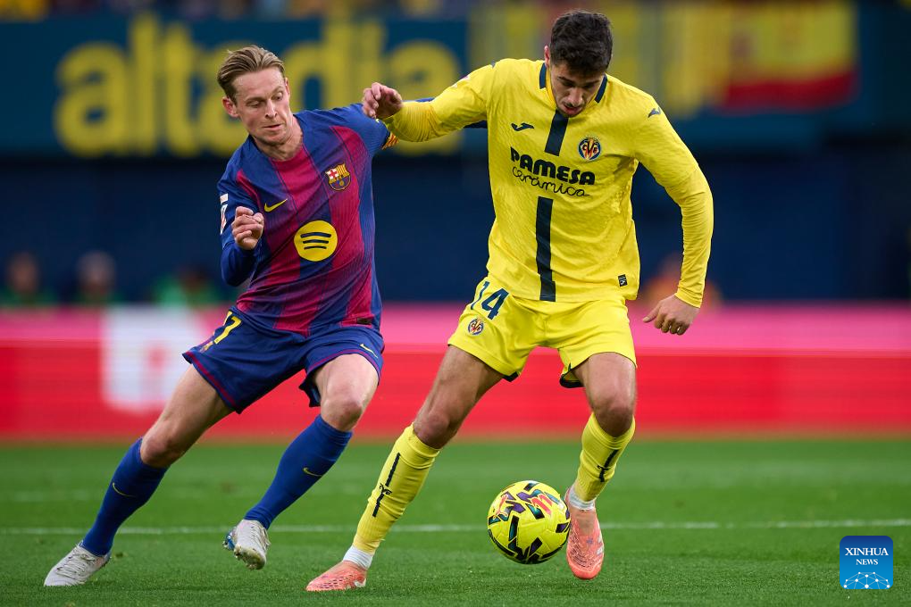 Santi Comesana, del Villarreal, compitió con Frenkie de Jong, del Barcelona, en una intensa batalla por el control del mediocampo.