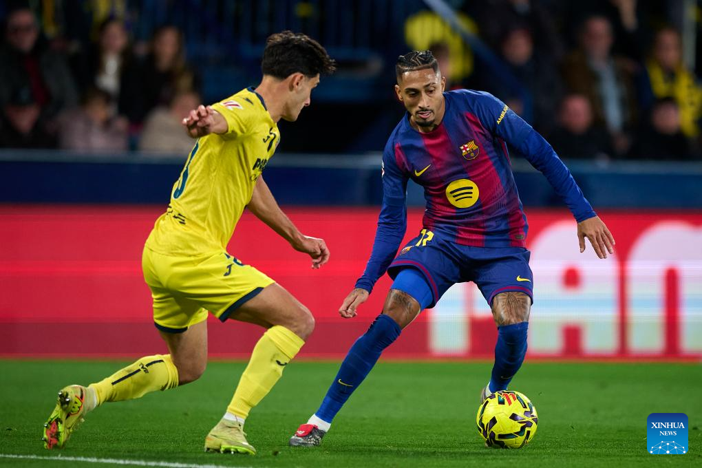 Sergi Cardona, del Villarreal, se enfrentó a Raphinha, del Barcelona, en un duelo individual durante el partido.