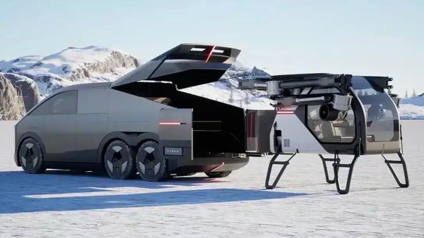 El helicóptero se transporta en la parte trasera y, una vez desplegado, se extienden los brazos con los rotores. Se trata de una aeronave biplaza con una configuración de seis rotores, una estructura de carbono para reducir el peso y un dosel panorámico con un amplio campo de visión. Se espera que permita tanto el control manual como el vuelo totalmente automático, incluyendo el despegue y el aterrizaje controlados con un solo botón. Según los datos disponibles, los parámetros de vuelo se orientan a trayectos cortos: el fabricante indica aproximadamente 20 a 30 minutos en el aire y una autonomía efectiva de alrededor de 30 km, con una velocidad máxima de hasta 120 km/h.